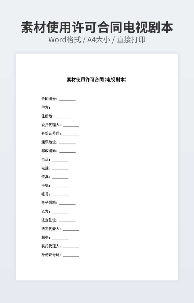 素材使用许可合同电视剧本