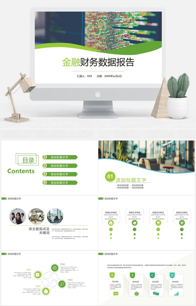 绿色环保是对自然环境实施保护,主要方式为减少污染,改善环保设备,研究新型环保材料,制定相关环保标准。我国2005年开展了“环保风暴”行动,志在减少我国的空气环境污染。绿色环保标志的含义 :标志由三部分构成,即下方的太阳,左右的叶片和中心的蓓蕾,象征自然生态;颜色为绿色,象征着生命、农业、环保;图形为正圆形,意为保护。下面给大家分享5套关于环保主题PPT模板。