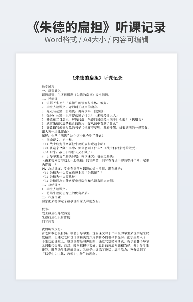 《朱德的扁担》听课记录