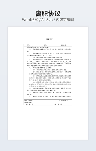 【特殊限制】设计师仅对作品中独创性部分享有著作权,对作品中含有的国旗、国徽等政治图案不享有权利,仅作为作品整体效果的示例展示,禁止商用。 相关关键词: 公司 员工 离职 申请表 优秀
