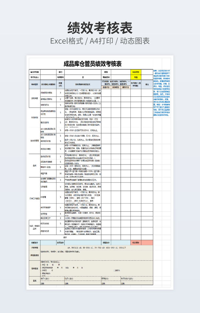 【特殊限制】设计师仅对作品中独创性部分享有著作权,对作品中含有的国旗、国徽等政治图案不享有权利,仅作为作品整体效果的示例展示,禁止商用。 相关关键词: 人力资源部 经理 绩效 考核表 优秀