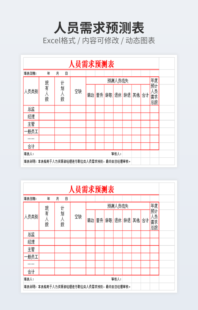 本作品内容为蓝色年度人力资源流动分析表excel模板下载,大小为19.48KB,作品为高清大图模板,格式为xlsx, 属于人力成本分析模板,作品模板源文件下载后可用编辑替换,模板中如有人物画像仅供参考禁止商用。小Q办公网-提供简历,PPT,Word,Excel优质模板素材下载模版平台,拥有海量的工作总结、竞聘求职、年终颁奖、计划书等。 通过小Q办公网下载人力成本分析模板源文件编辑修改源文件文字和图片即可使用。