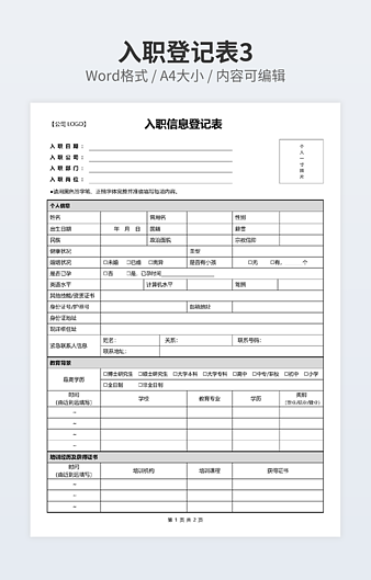 【特殊限制】设计师仅对作品中独创性部分享有著作权,对作品中含有的国旗、国徽等政治图案不享有权利,仅作为作品整体效果的示例展示,禁止商用。 相关关键词: 项目部 员工 入职 Excel 表格 模板 优秀