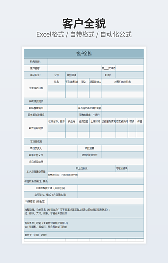 【特殊限制】设计师仅对作品中独创性部分享有著作权,对作品中含有的国旗、国徽等政治图案不享有权利,仅作为作品整体效果的示例展示,禁止商用。 相关关键词: 客户 销售 明细 记录 报表 excel 模板 优秀