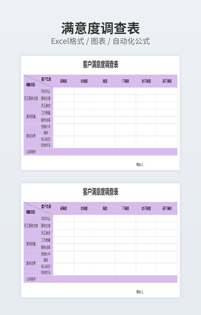 【特殊限制】设计师仅对作品中独创性部分享有著作权,对作品中含有的国旗、国徽等政治图案不享有权利,仅作为作品整体效果的示例展示,禁止商用。 相关关键词: 客户 满意 程度 调查表 优秀