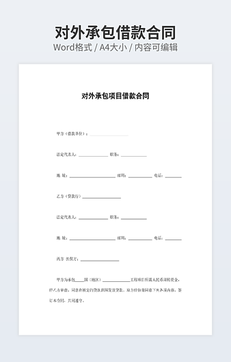 【特殊限制】设计师仅对作品中独创性部分享有著作权,对作品中含有的国旗、国徽等政治图案不享有权利,仅作为作品整体效果的示例展示,禁止商用。 相关关键词: 正规 借款 合同
