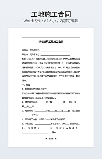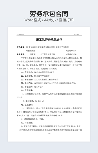 本作品内容为油漆施工合同下载,大小为25.92KB,作品为高清大图模板,格式为docx, 属于施工合同模板,作品模板源文件下载后可用编辑替换,模板中如有人物画像仅供参考禁止商用。小Q办公网-提供简历,PPT,Word,Excel优质模板素材下载模版平台,拥有海量的工作总结、竞聘求职、年终颁奖、计划书等。 通过小Q办公网下载施工合同模板源文件编辑修改源文件文字和图片即可使用。