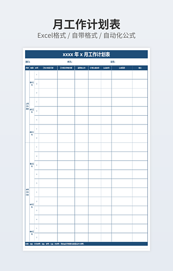 本作品内容为周工作报表下载,大小为10.94KB,作品为高清大图模板,格式为xlsx, 属于工作计划表模板,作品模板源文件下载后可用编辑替换,模板中如有人物画像仅供参考禁止商用。小Q办公网-提供简历,PPT,Word,Excel优质模板素材下载模版平台,拥有海量的工作总结、竞聘求职、年终颁奖、计划书等。 通过小Q办公网下载工作计划表模板源文件编辑修改源文件文字和图片即可使用。