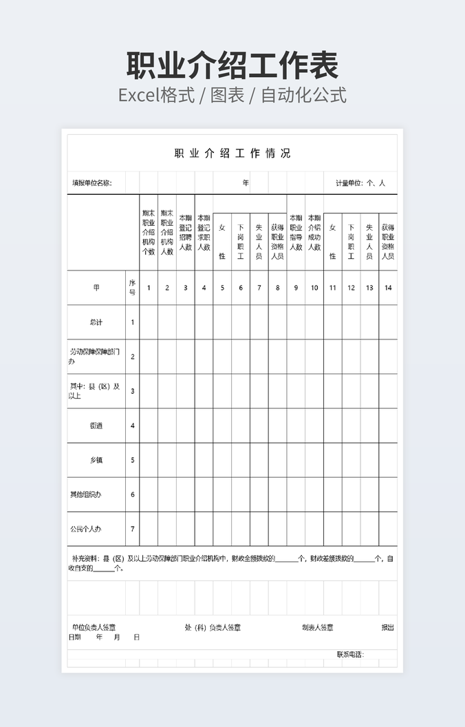 【特殊限制】设计师仅对作品中独创性部分享有著作权,对作品中含有的国旗、国徽等政治图案不享有权利,仅作为作品整体效果的示例展示,禁止商用。 相关关键词: 各部门 人员 统计 报告 excel 表格 模板 优秀