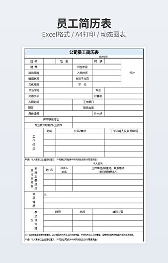 企业员工个人履历表模板