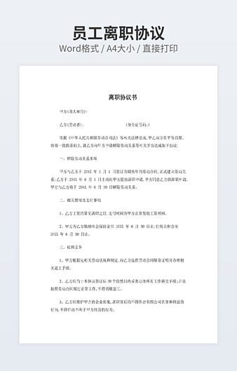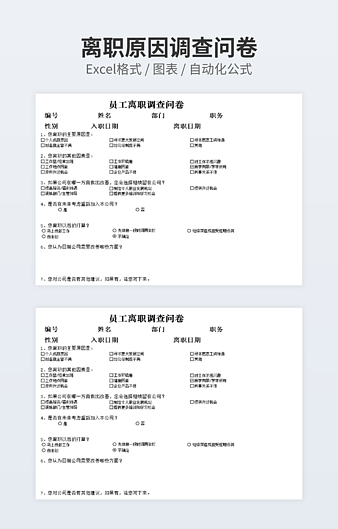 【特殊限制】设计师仅对作品中独创性部分享有著作权,对作品中含有的国旗、国徽等政治图案不享有权利,仅作为作品整体效果的示例展示,禁止商用。 相关关键词: 公司 员工 离职 Excel