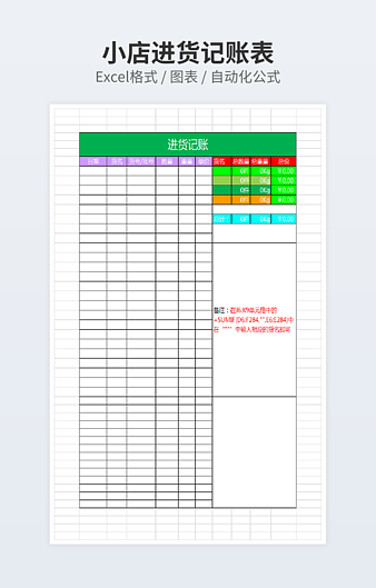 【特殊限制】设计师仅对作品中独创性部分享有著作权,对作品中含有的国旗、国徽等政治图案不享有权利,仅作为作品整体效果的示例展示,禁止商用。 相关关键词: 公司 简约 进货 记账 excel 模板
