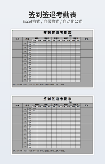 本作品内容为培训及会议签到表下载,大小为12.52KB,作品为高清大图模板,格式为xlsx, 属于EXCEL表格模板,作品模板源文件下载后可用编辑替换,模板中如有人物画像仅供参考禁止商用。小Q办公网-提供简历,PPT,Word,Excel优质模板素材下载模版平台,拥有海量的工作总结、竞聘求职、年终颁奖、计划书等。 通过小Q办公网下载EXCEL表格模板源文件编辑修改源文件文字和图片即可使用。