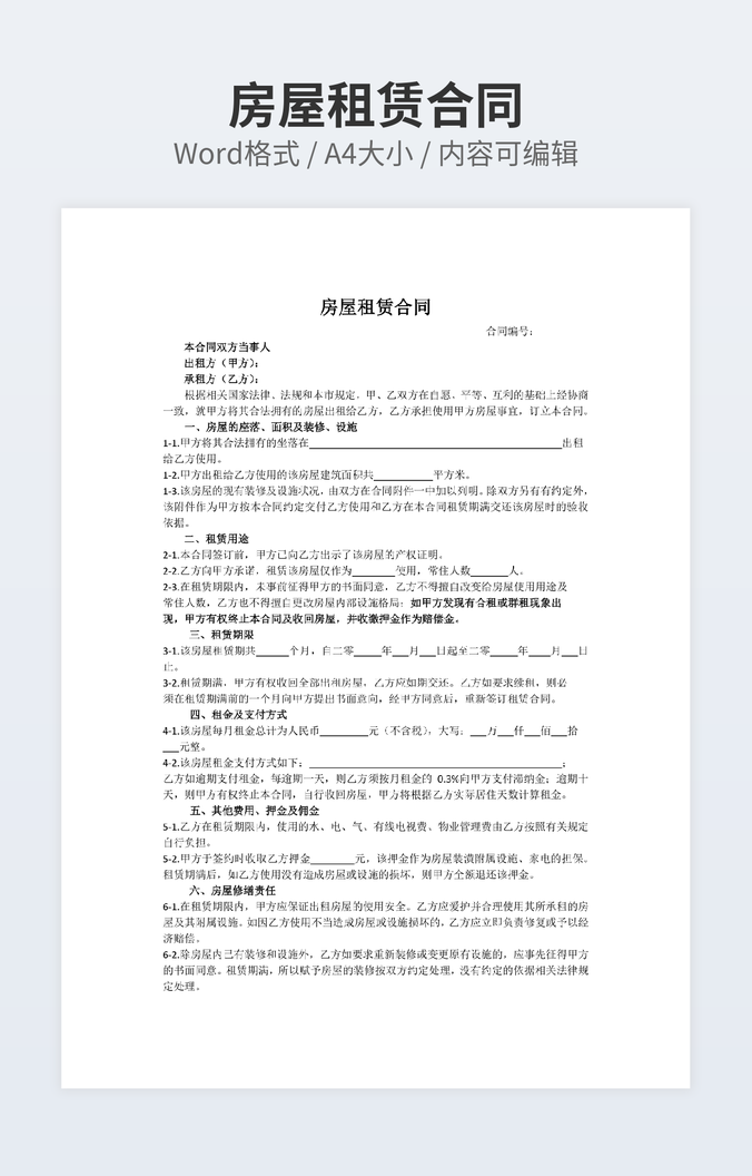 【特殊限制】设计师仅对作品中独创性部分享有著作权,对作品中含有的国旗、国徽等政治图案不享有权利,仅作为作品整体效果的示例展示,禁止商用。 相关关键词: 完整 租房 合同