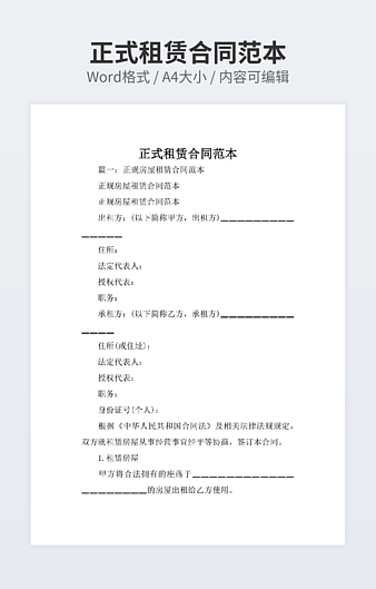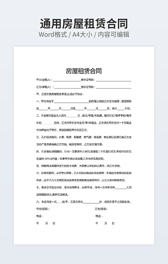 本作品内容为房屋租赁协议书下载,大小为17.38KB,作品为高清大图模板,格式为docx, 属于通用租赁合同模板,作品模板源文件下载后可用编辑替换,模板中如有人物画像仅供参考禁止商用。小Q办公网-提供简历,PPT,Word,Excel优质模板素材下载模版平台,拥有海量的工作总结、竞聘求职、年终颁奖、计划书等。 通过小Q办公网下载通用租赁合同模板源文件编辑修改源文件文字和图片即可使用。