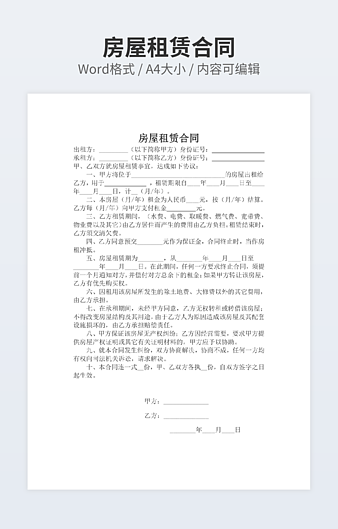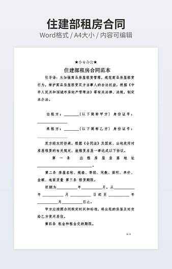 本作品内容为房屋租赁合同范本下载,大小为28KB,作品为高清大图模板,格式为doc, 属于通用租赁合同模板,作品模板源文件下载后可用编辑替换,模板中如有人物画像仅供参考禁止商用。小Q办公网-提供简历,PPT,Word,Excel优质模板素材下载模版平台,拥有海量的工作总结、竞聘求职、年终颁奖、计划书等。 通过小Q办公网下载通用租赁合同模板源文件编辑修改源文件文字和图片即可使用。