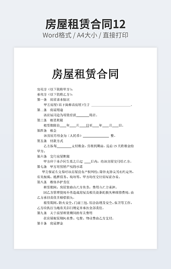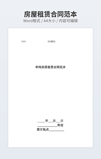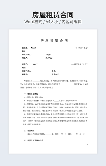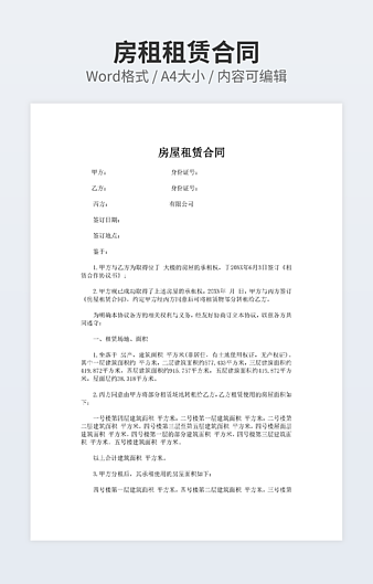 【特殊限制】设计师仅对作品中独创性部分享有著作权,对作品中含有的国旗、国徽等政治图案不享有权利,仅作为作品整体效果的示例展示,禁止商用。 相关关键词: 通用 房屋租赁 合同