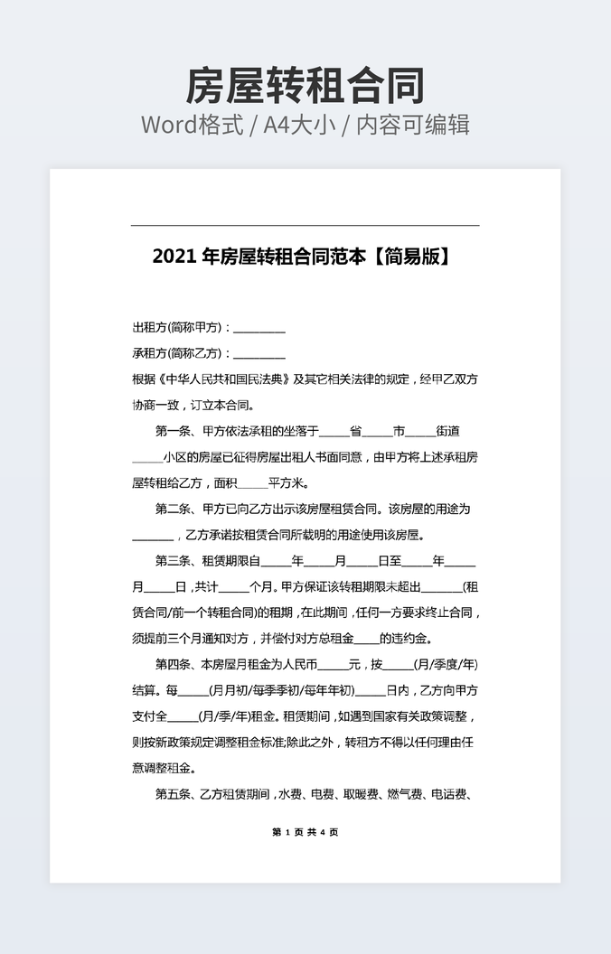 【特殊限制】设计师仅对作品中独创性部分享有著作权,对作品中含有的国旗、国徽等政治图案不享有权利,仅作为作品整体效果的示例展示,禁止商用。 相关关键词: 店面 转租 协议书 简单 实用