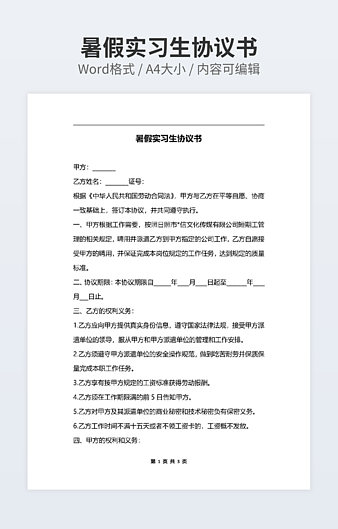 【特殊限制】设计师仅对作品中独创性部分享有著作权,对作品中含有的国旗、国徽等政治图案不享有权利,仅作为作品整体效果的示例展示,禁止商用。 相关关键词: 学生 定岗 实习 协议 范文