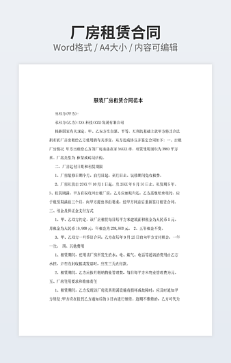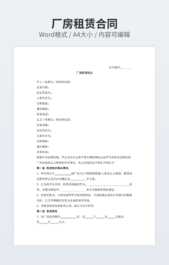 【特殊限制】设计师仅对作品中独创性部分享有著作权,对作品中含有的国旗、国徽等政治图案不享有权利,仅作为作品整体效果的示例展示,禁止商用。 相关关键词: 厂房 租赁 合同书