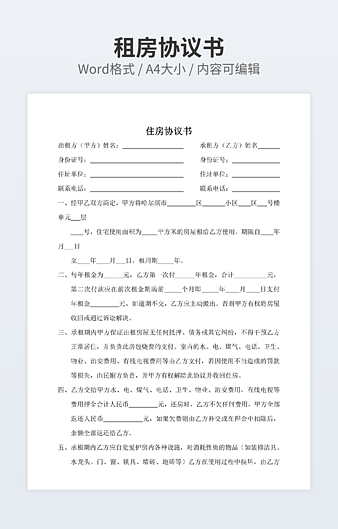 本作品内容为房屋租赁合同(详细版)下载,大小为20.92KB,作品为高清大图模板,格式为doc, 属于通用租赁合同模板,作品模板源文件下载后可用编辑替换,模板中如有人物画像仅供参考禁止商用。小Q办公网-提供简历,PPT,Word,Excel优质模板素材下载模版平台,拥有海量的工作总结、竞聘求职、年终颁奖、计划书等。 通过小Q办公网下载通用租赁合同模板源文件编辑修改源文件文字和图片即可使用。