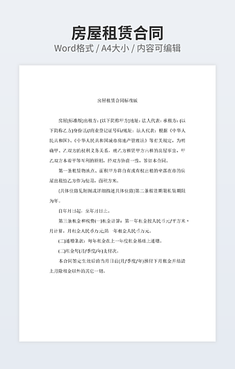 【特殊限制】设计师仅对作品中独创性部分享有著作权,对作品中含有的国旗、国徽等政治图案不享有权利,仅作为作品整体效果的示例展示,禁止商用。 相关关键词: 房屋租赁 合同 协议