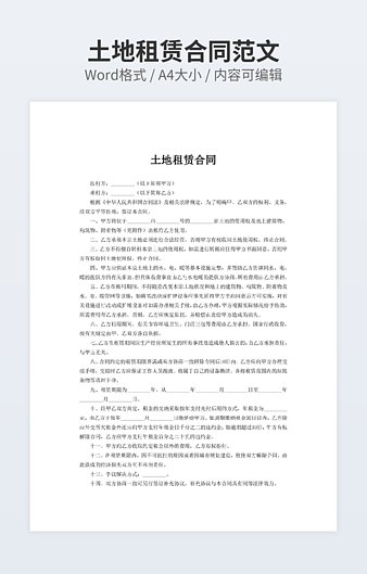 【特殊限制】设计师仅对作品中独创性部分享有著作权,对作品中含有的国旗、国徽等政治图案不享有权利,仅作为作品整体效果的示例展示,禁止商用。 相关关键词: 土地 租赁 合同