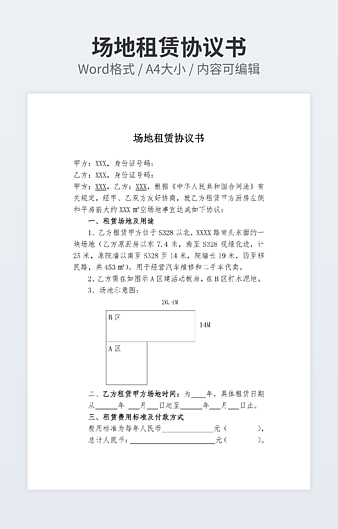 【特殊限制】设计师仅对作品中独创性部分享有著作权,对作品中含有的国旗、国徽等政治图案不享有权利,仅作为作品整体效果的示例展示,禁止商用。 相关关键词: 浙江省 场地 租赁 合同