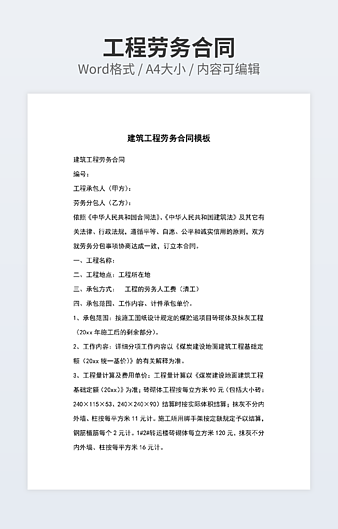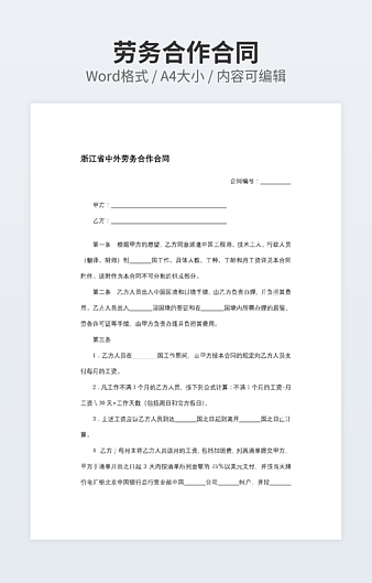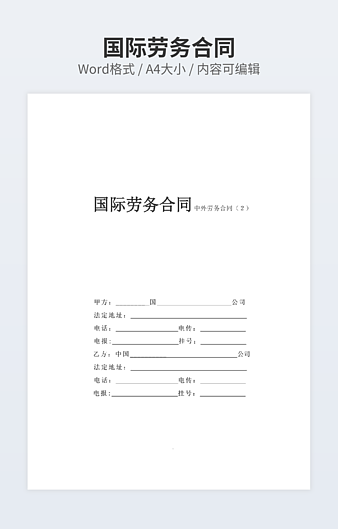 【特殊限制】设计师仅对作品中独创性部分享有著作权,对作品中含有的国旗、国徽等政治图案不享有权利,仅作为作品整体效果的示例展示,禁止商用。 相关关键词: 国际 劳务合同