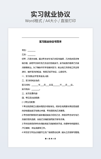 【特殊限制】设计师仅对作品中独创性部分享有著作权,对作品中含有的国旗、国徽等政治图案不享有权利,仅作为作品整体效果的示例展示,禁止商用。 相关关键词: 毕业 大学生 实习 就业 协议