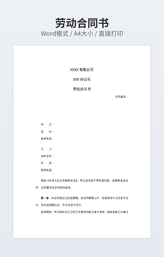 本作品内容为矿山井下行业劳动合同下载,大小为28.61KB,作品为高清大图模板,格式为docx, 属于劳动合同模板,作品模板源文件下载后可用编辑替换,模板中如有人物画像仅供参考禁止商用。小Q办公网-提供简历,PPT,Word,Excel优质模板素材下载模版平台,拥有海量的工作总结、竞聘求职、年终颁奖、计划书等。 通过小Q办公网下载劳动合同模板源文件编辑修改源文件文字和图片即可使用。
