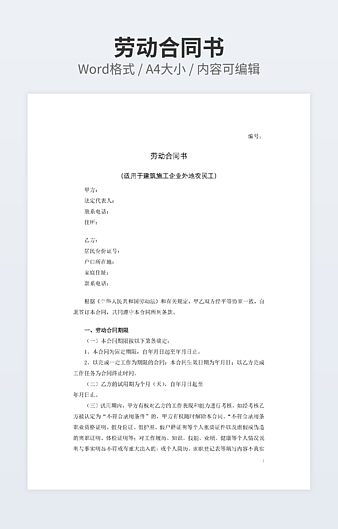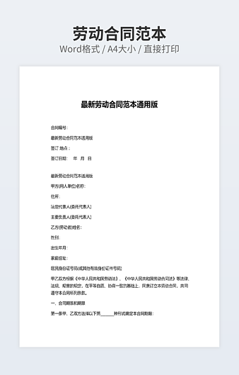 本作品内容为销售公司劳动合同下载,大小为31.5KB,作品为高清大图模板,格式为doc, 属于劳动合同模板,作品模板源文件下载后可用编辑替换,模板中如有人物画像仅供参考禁止商用。小Q办公网-提供简历,PPT,Word,Excel优质模板素材下载模版平台,拥有海量的工作总结、竞聘求职、年终颁奖、计划书等。 通过小Q办公网下载劳动合同模板源文件编辑修改源文件文字和图片即可使用。