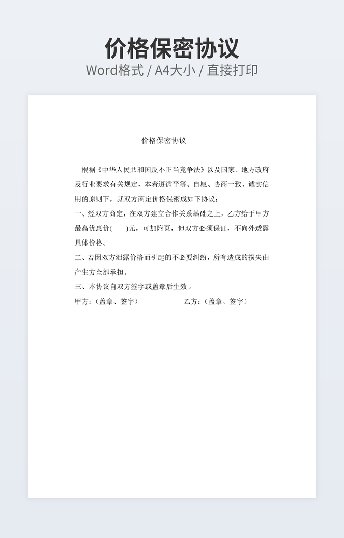 【特殊限制】设计师仅对作品中独创性部分享有著作权,对作品中含有的国旗、国徽等政治图案不享有权利,仅作为作品整体效果的示例展示,禁止商用。 相关关键词: 保密 协议 范本 简要