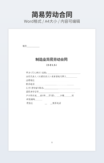 本作品内容为新疆维吾尔自治区建筑行业农民工劳动合同2下载,大小为31.03KB,作品为高清大图模板,格式为docx, 属于劳动合同模板,作品模板源文件下载后可用编辑替换,模板中如有人物画像仅供参考禁止商用。小Q办公网-提供简历,PPT,Word,Excel优质模板素材下载模版平台,拥有海量的工作总结、竞聘求职、年终颁奖、计划书等。 通过小Q办公网下载劳动合同模板源文件编辑修改源文件文字和图片即可使用。