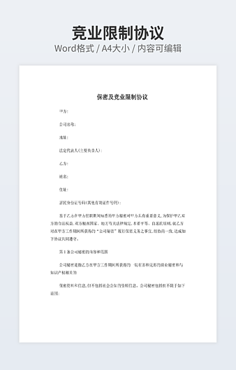 【特殊限制】设计师仅对作品中独创性部分享有著作权,对作品中含有的国旗、国徽等政治图案不享有权利,仅作为作品整体效果的示例展示,禁止商用。 相关关键词: 保密 协议 对方 主要