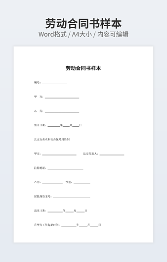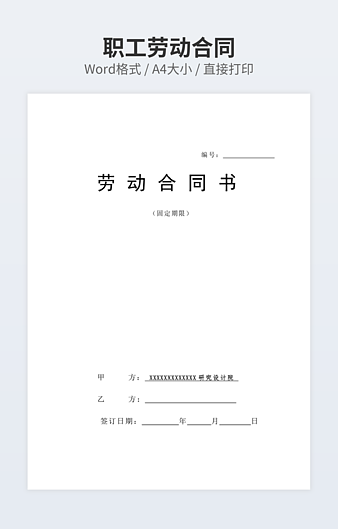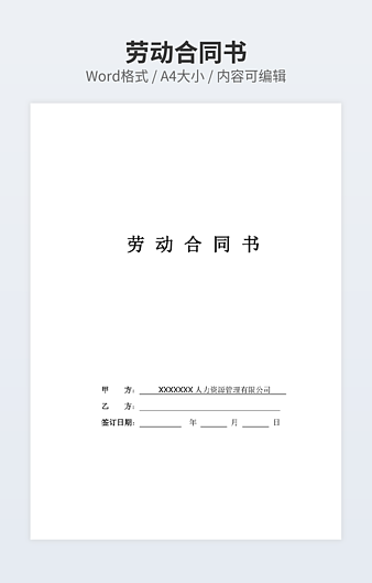 【特殊限制】设计师仅对作品中独创性部分享有著作权,对作品中含有的国旗、国徽等政治图案不享有权利,仅作为作品整体效果的示例展示,禁止商用。 相关关键词: 劳动合同 标准版 合同