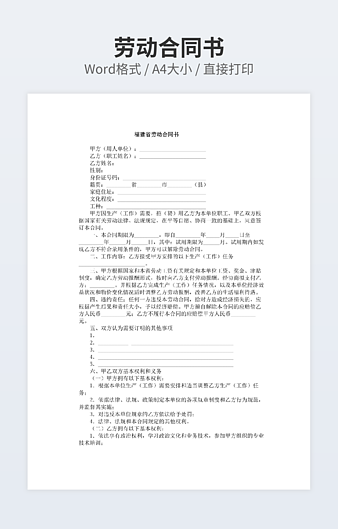 【特殊限制】设计师仅对作品中独创性部分享有著作权,对作品中含有的国旗、国徽等政治图案不享有权利,仅作为作品整体效果的示例展示,禁止商用。 相关关键词: 简易 劳动合同