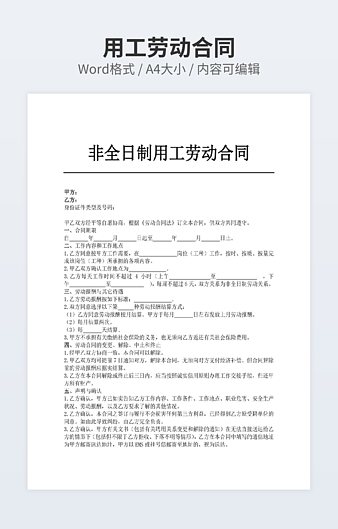 【特殊限制】设计师仅对作品中独创性部分享有著作权,对作品中含有的国旗、国徽等政治图案不享有权利,仅作为作品整体效果的示例展示,禁止商用。 相关关键词: 非全日制 用工 简易 劳动合同 参考 参考文 文本