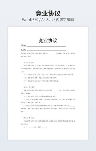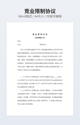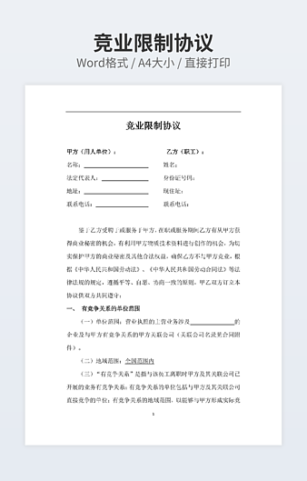 【特殊限制】设计师仅对作品中独创性部分享有著作权,对作品中含有的国旗、国徽等政治图案不享有权利,仅作为作品整体效果的示例展示,禁止商用。 相关关键词: 员工 保密 竞业 禁止 协议书 模版