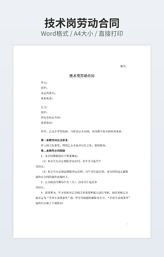 本作品内容为中外合资企业劳动合同下载,大小为27.5KB,作品为高清大图模板,格式为doc, 属于劳动合同模板,作品模板源文件下载后可用编辑替换,模板中如有人物画像仅供参考禁止商用。小Q办公网-提供简历,PPT,Word,Excel优质模板素材下载模版平台,拥有海量的工作总结、竞聘求职、年终颁奖、计划书等。 通过小Q办公网下载劳动合同模板源文件编辑修改源文件文字和图片即可使用。