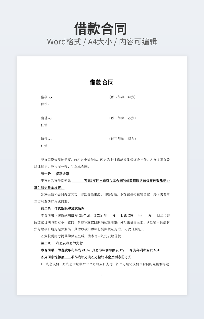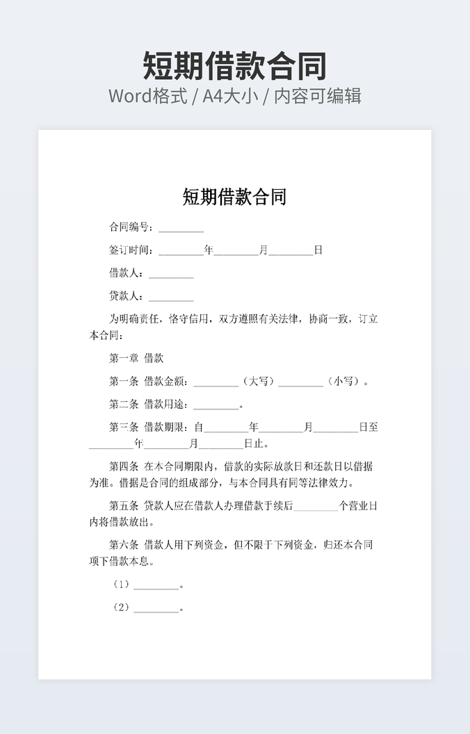 【特殊限制】设计师仅对作品中独创性部分享有著作权,对作品中含有的国旗、国徽等政治图案不享有权利,仅作为作品整体效果的示例展示,禁止商用。 相关关键词: 人民币 贷款 合同