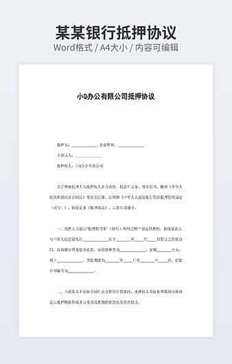 本作品内容为抵押贷款合同下载,大小为29KB,作品为高清大图模板,格式为doc, 属于贷款合同模板,作品模板源文件下载后可用编辑替换,模板中如有人物画像仅供参考禁止商用。小Q办公网-提供简历,PPT,Word,Excel优质模板素材下载模版平台,拥有海量的工作总结、竞聘求职、年终颁奖、计划书等。 通过小Q办公网下载贷款合同模板源文件编辑修改源文件文字和图片即可使用。