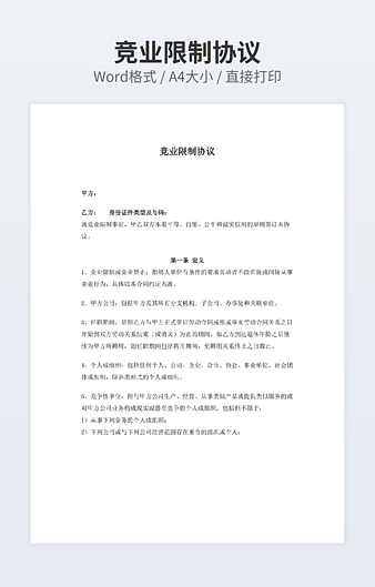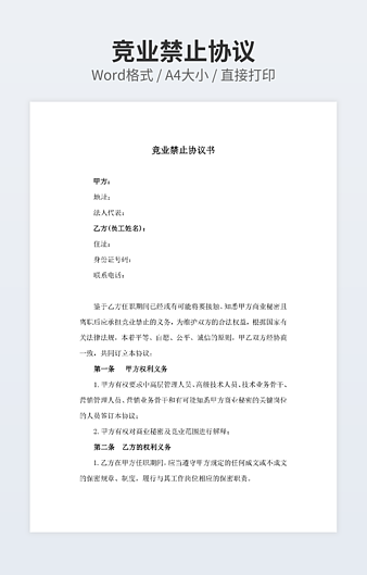 【特殊限制】设计师仅对作品中独创性部分享有著作权,对作品中含有的国旗、国徽等政治图案不享有权利,仅作为作品整体效果的示例展示,禁止商用。 相关关键词: 保密 竞业 限制 合同