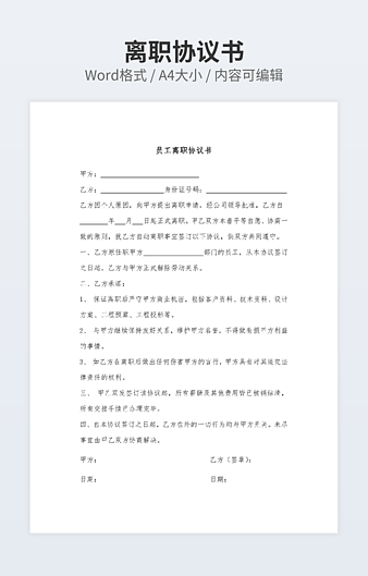 【特殊限制】设计师仅对作品中独创性部分享有著作权,对作品中含有的国旗、国徽等政治图案不享有权利,仅作为作品整体效果的示例展示,禁止商用。 相关关键词: 员工 离职 竞业 限制 协议书