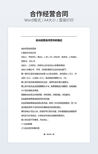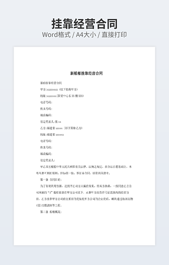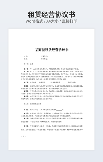 【特殊限制】设计师仅对作品中独创性部分享有著作权,对作品中含有的国旗、国徽等政治图案不享有权利,仅作为作品整体效果的示例展示,禁止商用。 相关关键词: 租赁经营 合同书 范文