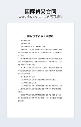 【特殊限制】设计师仅对作品中独创性部分享有著作权,对作品中含有的国旗、国徽等政治图案不享有权利,仅作为作品整体效果的示例展示,禁止商用。 相关关键词: 进口 合同 范文