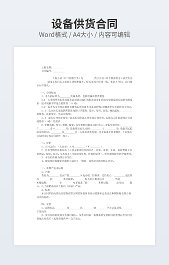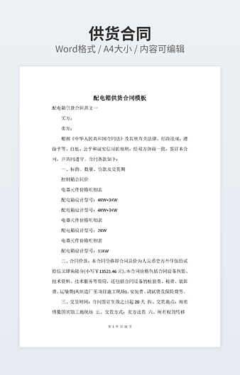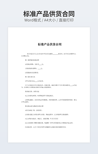 本作品内容为招标采购供货合同书下载,大小为29.77KB,作品为高清大图模板,格式为docx, 属于供货合同模板,作品模板源文件下载后可用编辑替换,模板中如有人物画像仅供参考禁止商用。小Q办公网-提供简历,PPT,Word,Excel优质模板素材下载模版平台,拥有海量的工作总结、竞聘求职、年终颁奖、计划书等。 通过小Q办公网下载供货合同模板源文件编辑修改源文件文字和图片即可使用。