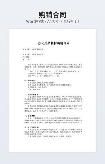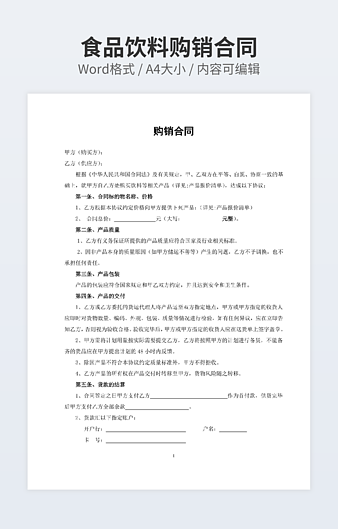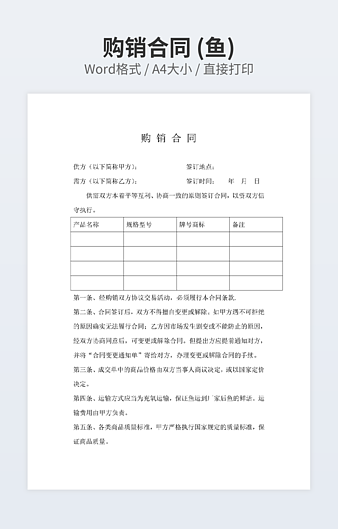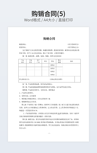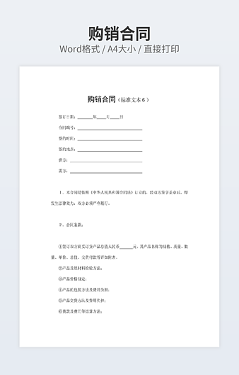 本作品内容为购销合同下载,大小为26.5KB,作品为高清大图模板,格式为doc, 属于购销合同模板,作品模板源文件下载后可用编辑替换,模板中如有人物画像仅供参考禁止商用。小Q办公网-提供简历,PPT,Word,Excel优质模板素材下载模版平台,拥有海量的工作总结、竞聘求职、年终颁奖、计划书等。 通过小Q办公网下载购销合同模板源文件编辑修改源文件文字和图片即可使用。
