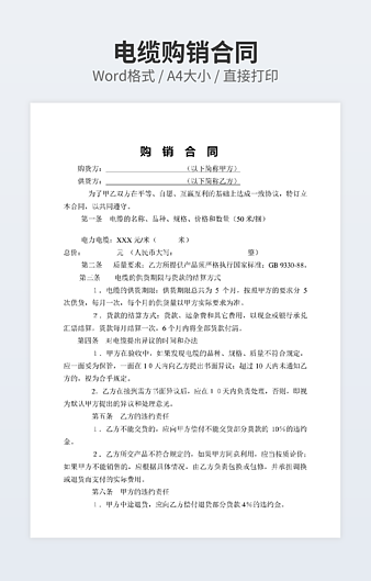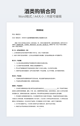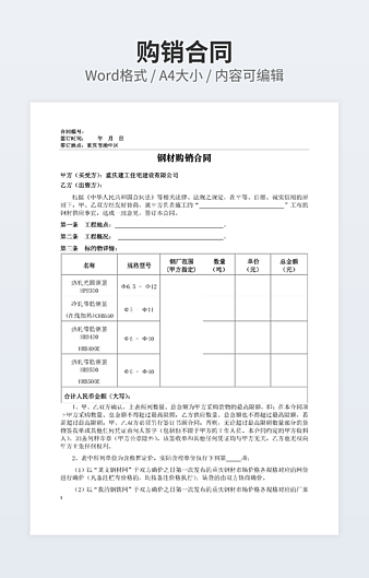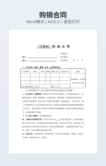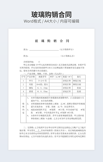 本作品内容为购销合同下载,大小为26.5KB,作品为高清大图模板,格式为doc, 属于购销合同模板,作品模板源文件下载后可用编辑替换,模板中如有人物画像仅供参考禁止商用。小Q办公网-提供简历,PPT,Word,Excel优质模板素材下载模版平台,拥有海量的工作总结、竞聘求职、年终颁奖、计划书等。 通过小Q办公网下载购销合同模板源文件编辑修改源文件文字和图片即可使用。
