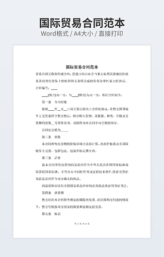 【特殊限制】设计师仅对作品中独创性部分享有著作权,对作品中含有的国旗、国徽等政治图案不享有权利,仅作为作品整体效果的示例展示,禁止商用。 相关关键词: 出口贸易 合同 协议书 样本